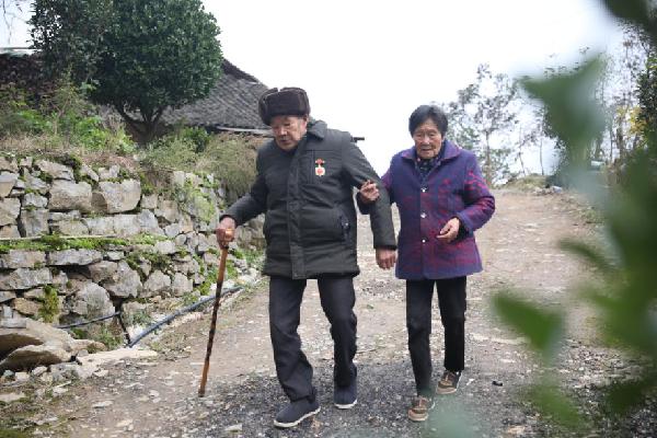 從湖北省巴東縣城坐車繞著山路行駛一個半小時后,記者來到官渡口鎮觀音巖村村民黃厚勇家中。黃厚勇是抗美援朝老兵黃忠茂的三兒子,老人跟他生活在一起。